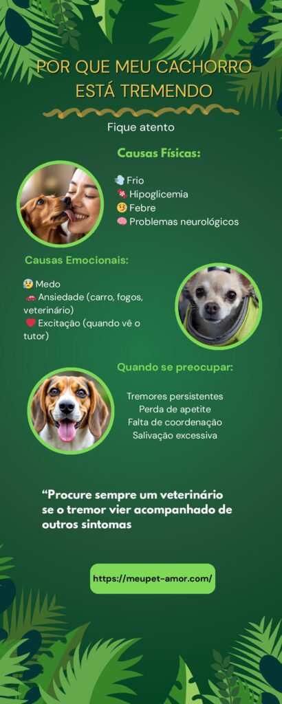 Antes de tudo, é importante compreender que o termo cachorro tremendo descreve um sintoma físico — e sintomas têm múltiplas causas. Alguns episódios são breves e relacionados ao ambiente, como frio ou excitação; outros são repetitivos e sinalizam problemas metabólicos, neurológicos ou de dor. Identificar o contexto em que o tremor ocorre é a peça-chave para escolher a ação correta. Neste artigo, cada seção traz orientações práticas e exemplos clínicos para ajudar você a distinguir entre os diferentes cenários e agir com segurança.