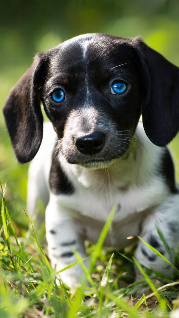 Dachshund Dapple (manchado ou merle) – o gene merle dilui a pigmentação da pelagem e também pode afetar a íris, resultando em olhos azuis, cinza-claros ou heterocromáticos (um de cada cor).