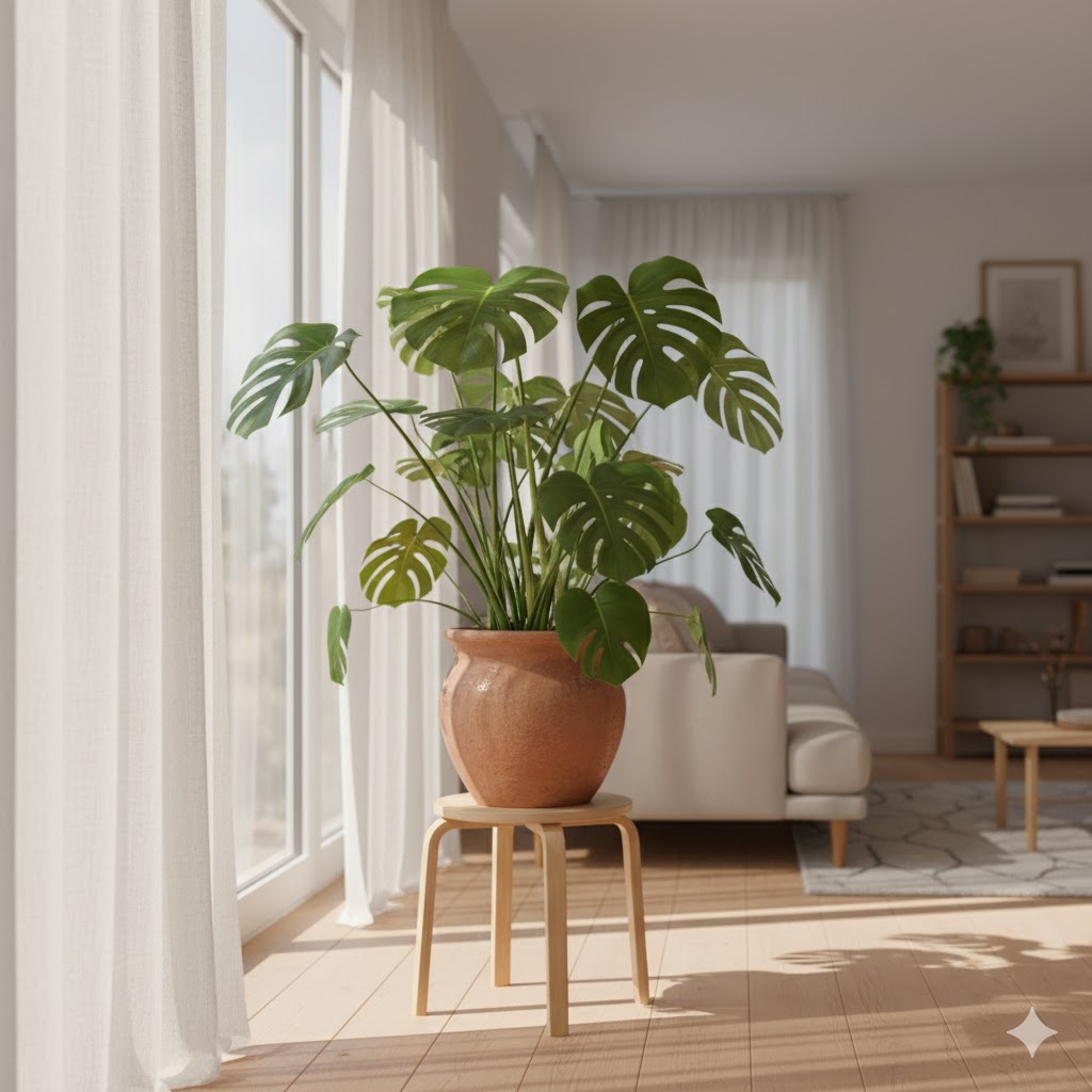 | Monstera (muitas vezes associada) | Grandes (30–60 cm) | Verde com cortes/nervuras | Muito popular na decoração; já é peça-chave em interiores |
